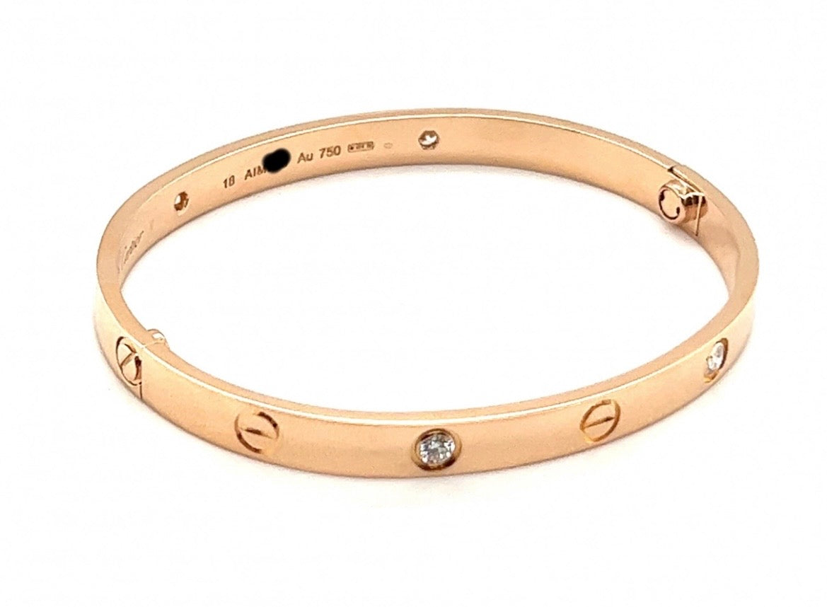 Cartier 18k Rose Gold 4 Diamonds love bracelet Size 18 CLASSIC MODEL